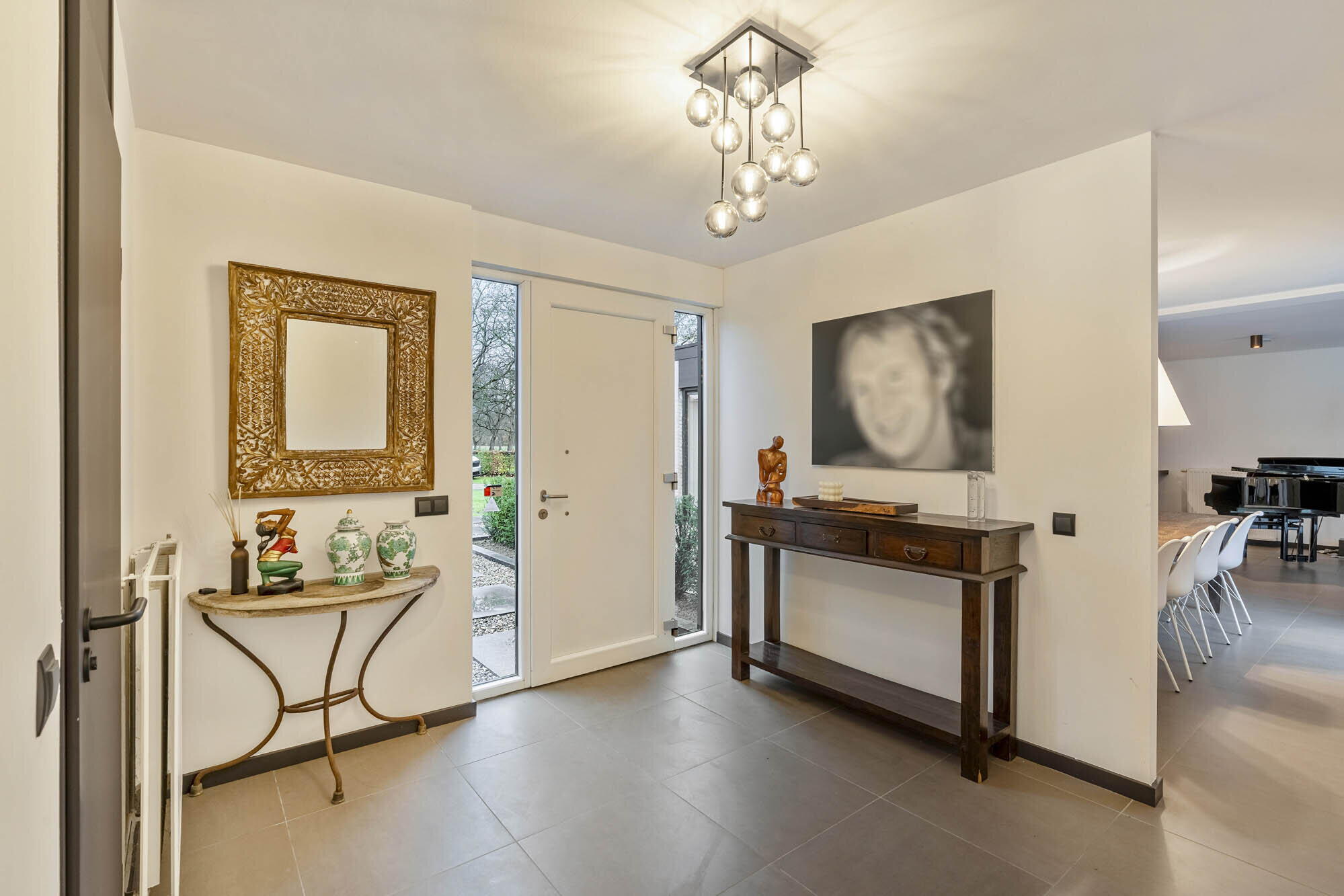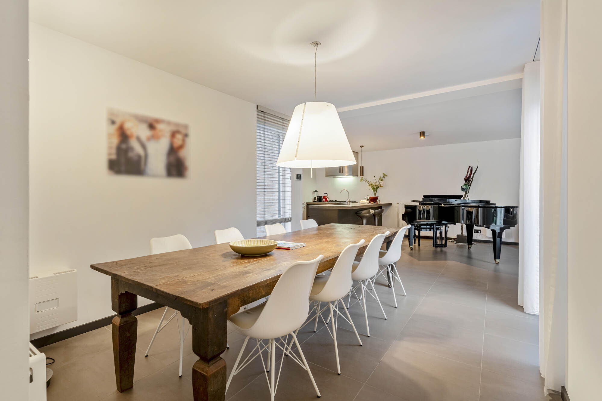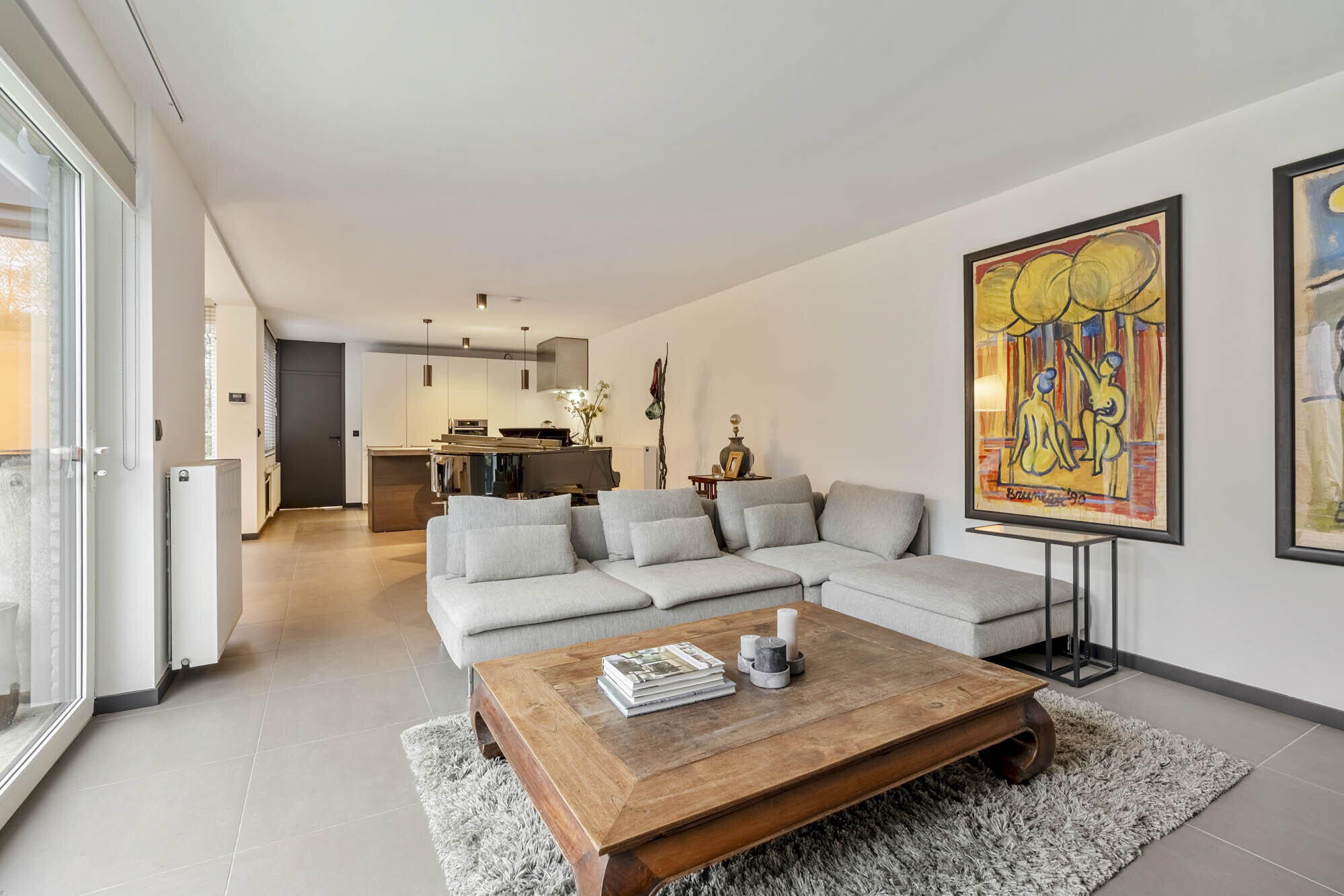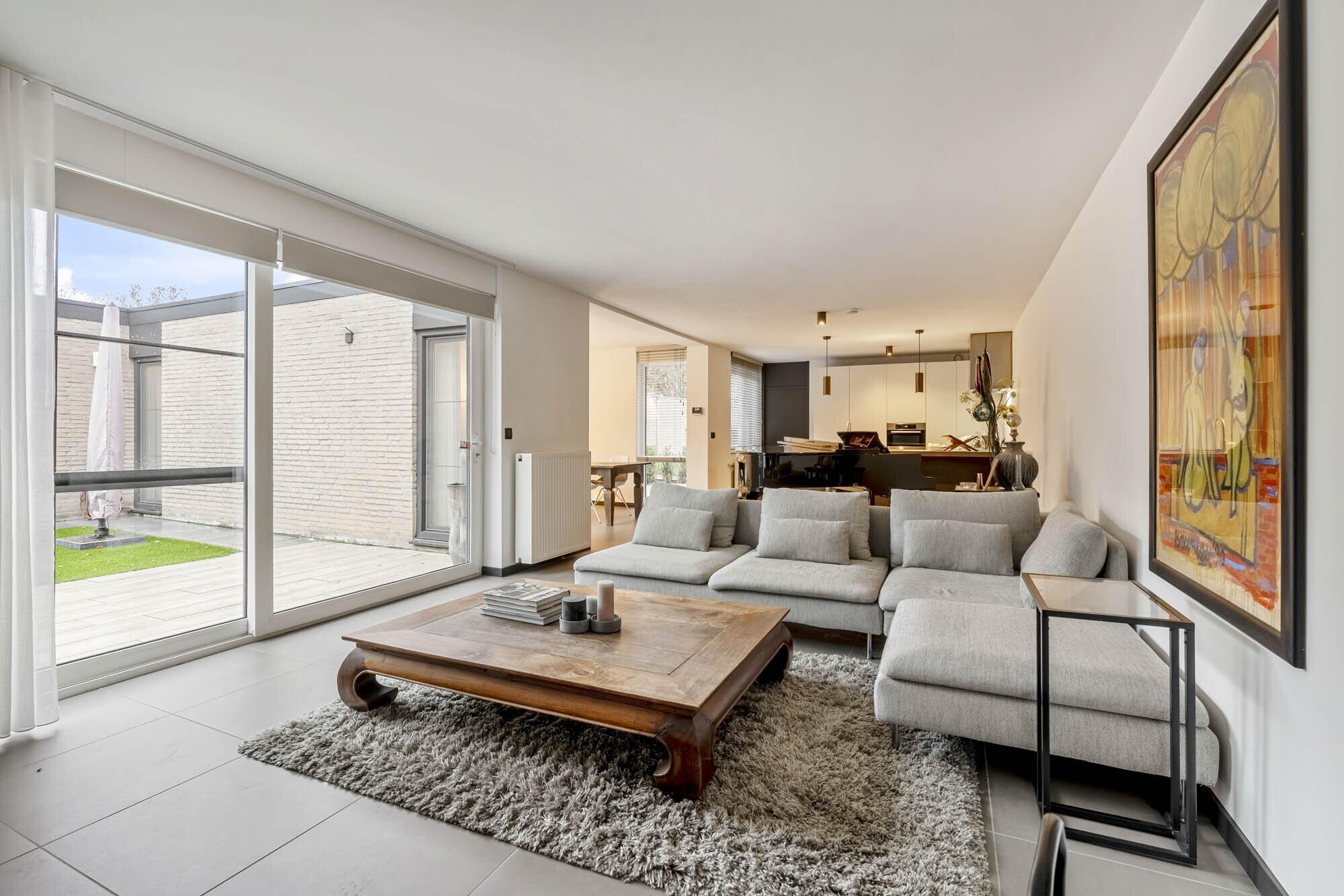 - Woonkamer en eetkamer voorzien van een prachtige sfeervolle designhaard (RAIS Attika - Dalemans Maasmechelen 2023), schuifraam dat toegang geeft tot de binnentuin;