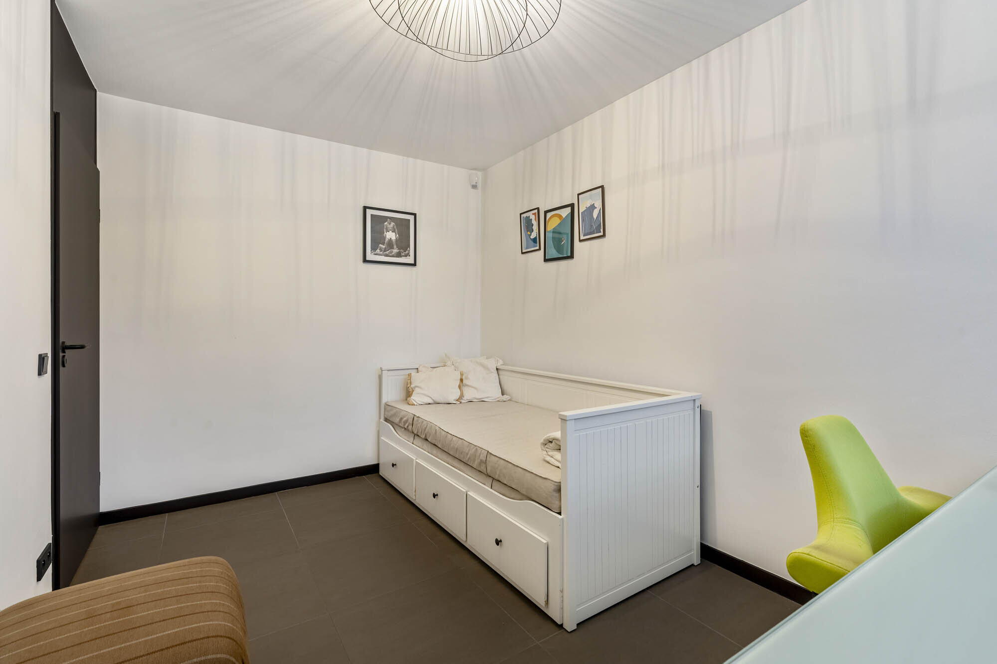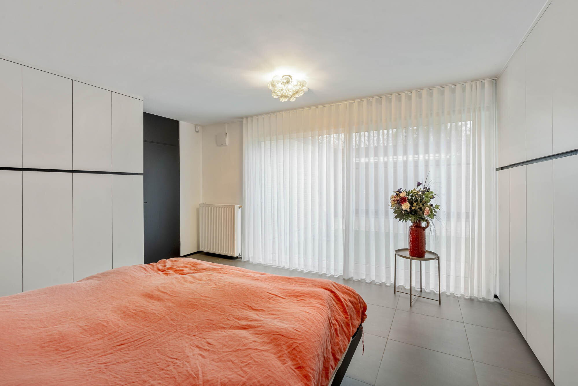 - Slaapkamer 3 (17 m²), masterbedroom met prachtige maatkasten (Dalemans Maasmechelen) en toegang tot de binnentuin.